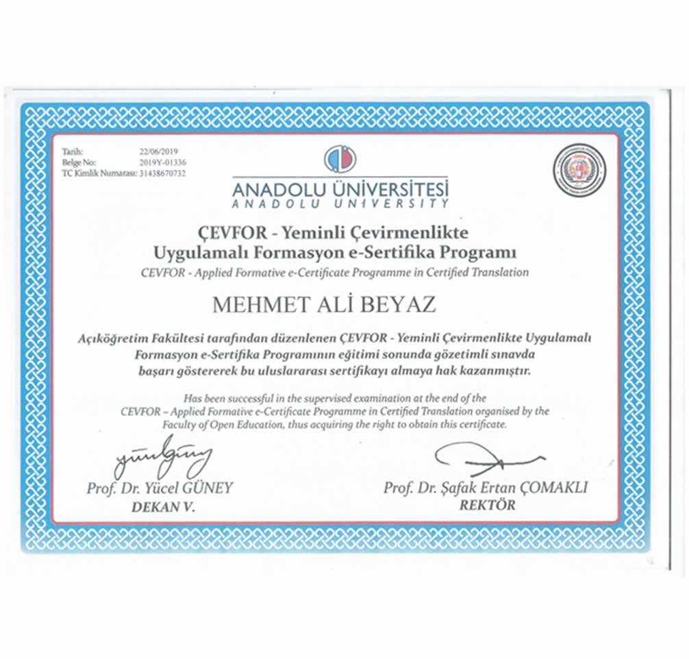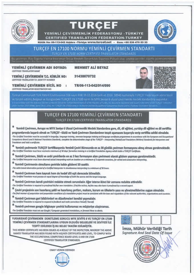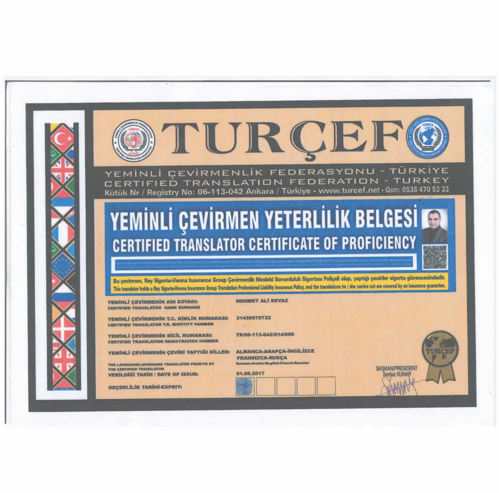 Сертифицированное Бюро Переводов «Беяз» Сертификаты